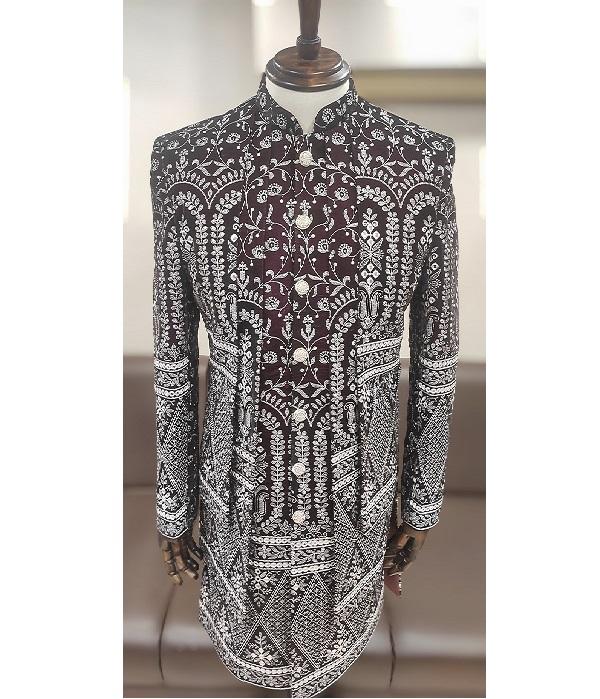 Mens Wedding Wear Indowestern Set Made with Rich Velvet Fabric Including Embroidered Kurta and Open Style Jacket for Party