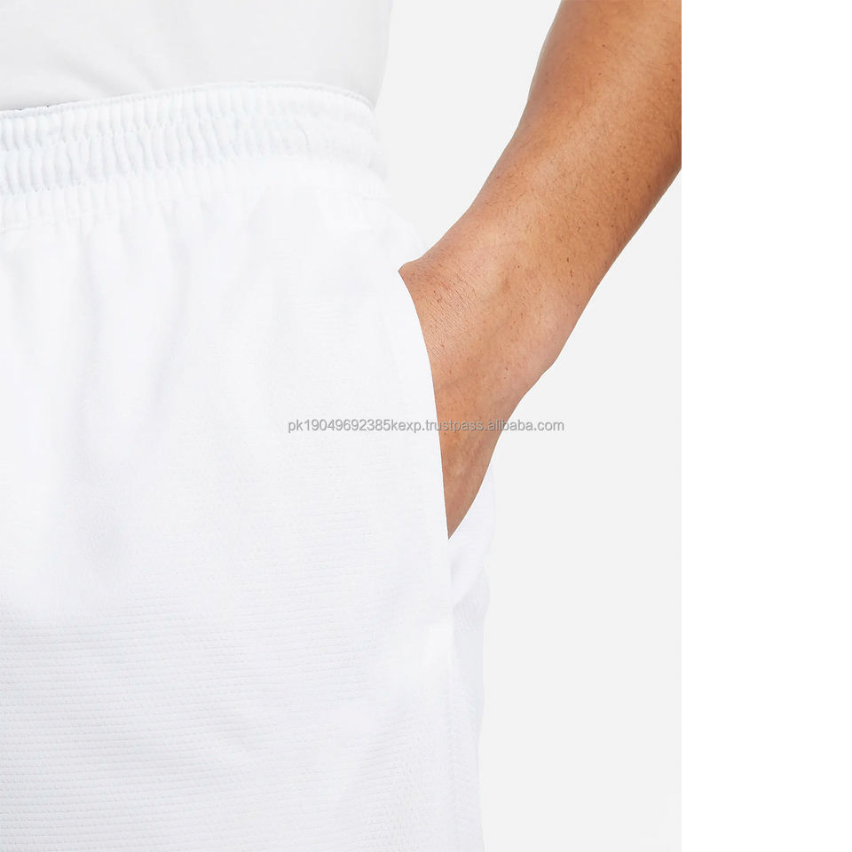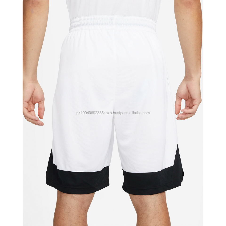 Mens White Sports Shorts with Black Contrast Hem Custom Logo Athletic Training Quick Dry Gymwear Shorts