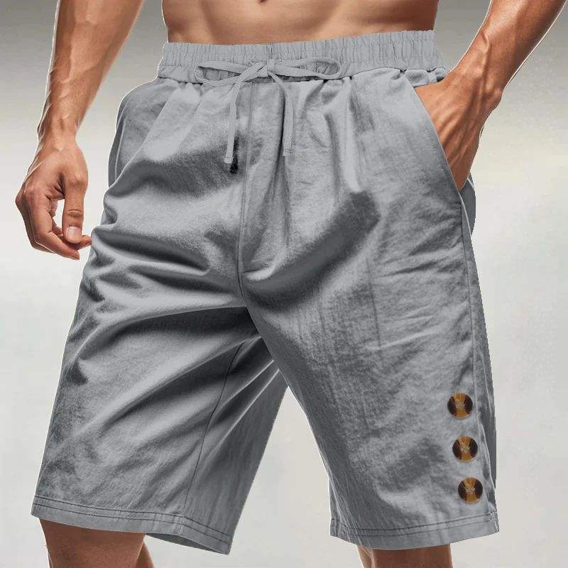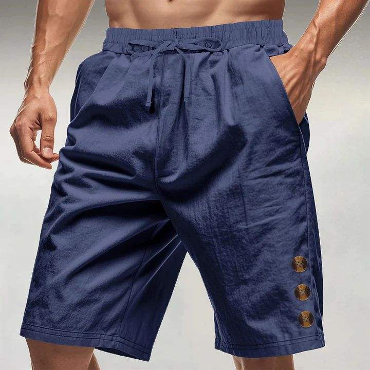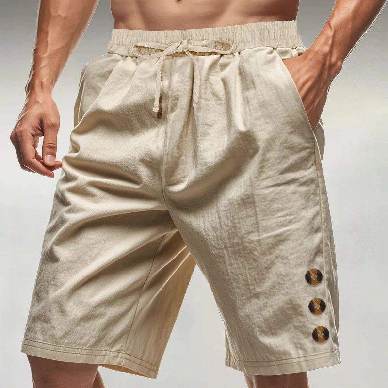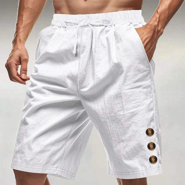 Mens White Summer Shorts Elastic Waist Drawstring Casual Beachwear Cotton Linen Breathable Knee Length Loose Fit with Buttons