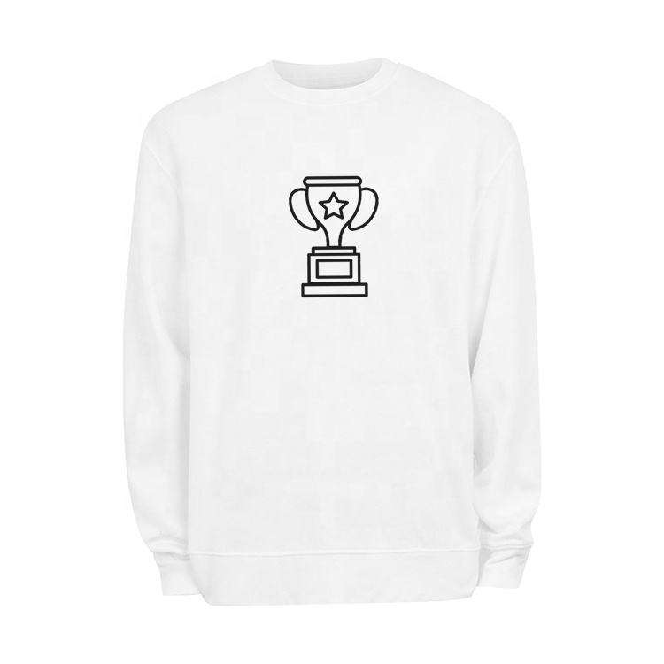 Mens White Sweatshirt Trophy Print Pullover Fleece Casual Streetwear OEM ODM Wholesale