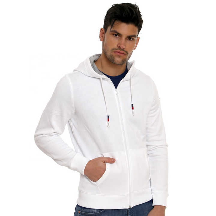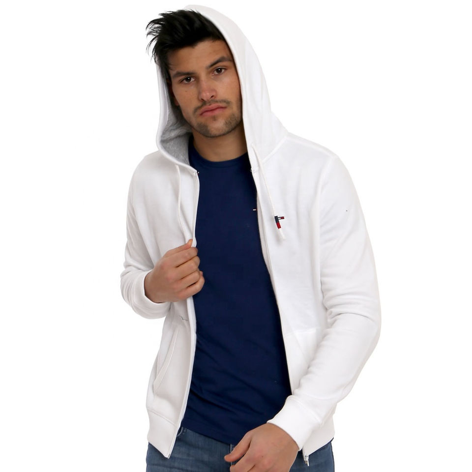 Mens White Zip up Hoodie Plain Basic Hooded Sweatshirt Casual Streetwear Activewear Custom Fleece Regular Fit Winter 100% Cotton