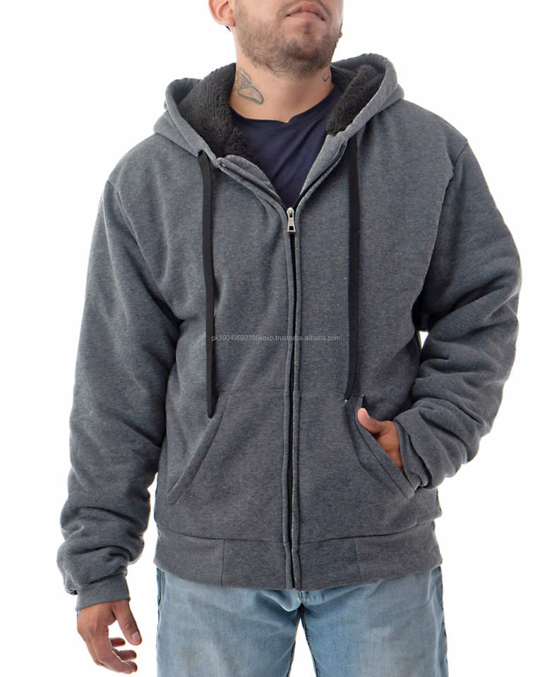 Mens Winter Heavyweight Hoodie Solid Zip up Fleece Hoodie Sherpa Lined Thermal Jacket