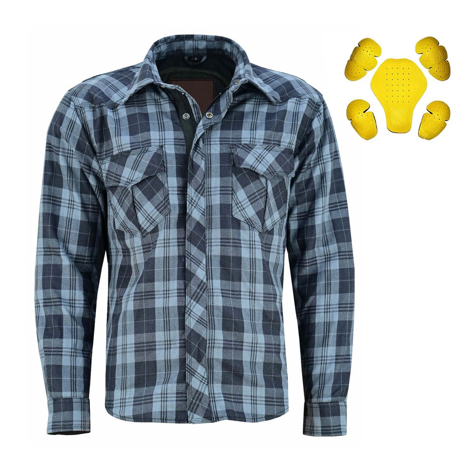 Mens Womens Custom for Lined Flannel Shirt Blue Plaid Armored Motorcycle Protective Flame-Retardant Button Pearl Snap Custom