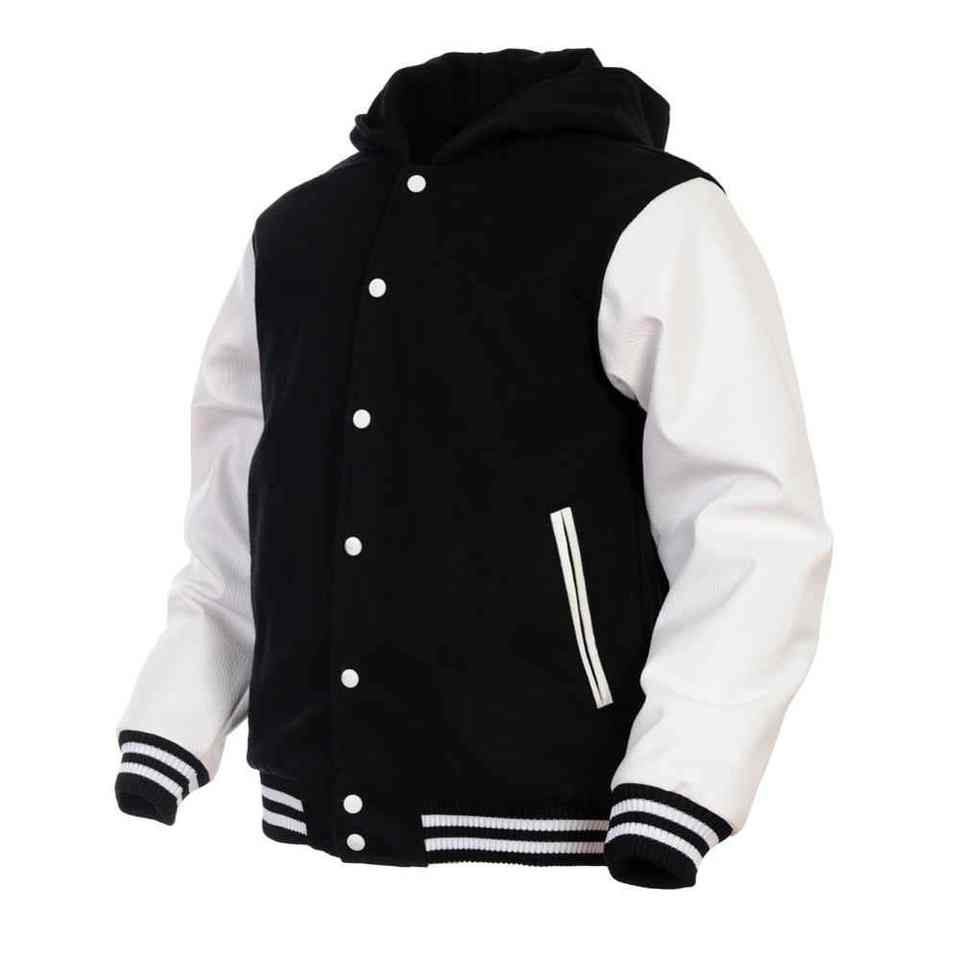 Mens Womens Unisex Wool + Leather Hoodie , Varsity Baseball Letterman Jacket College Jackets for Boys