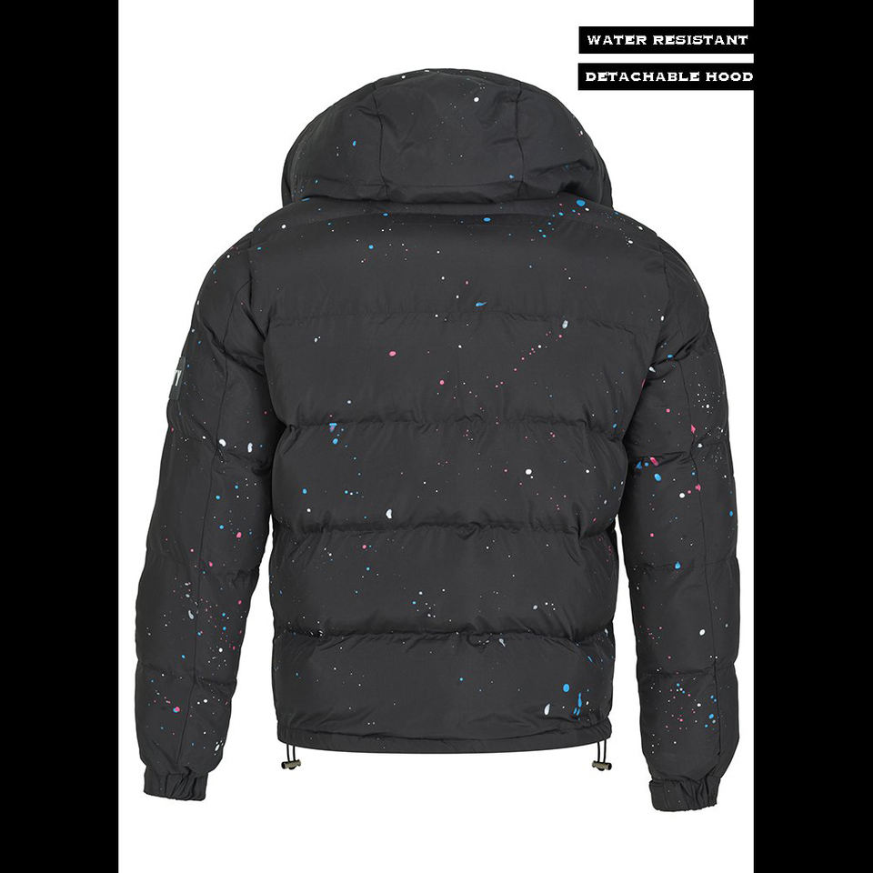 Mens Womens Zipper Puffer Jacket Wholesale PAINT PUFFER JACKET - BLACK Winter Customize With Adjustable Hood