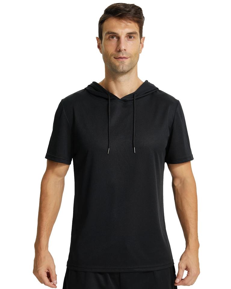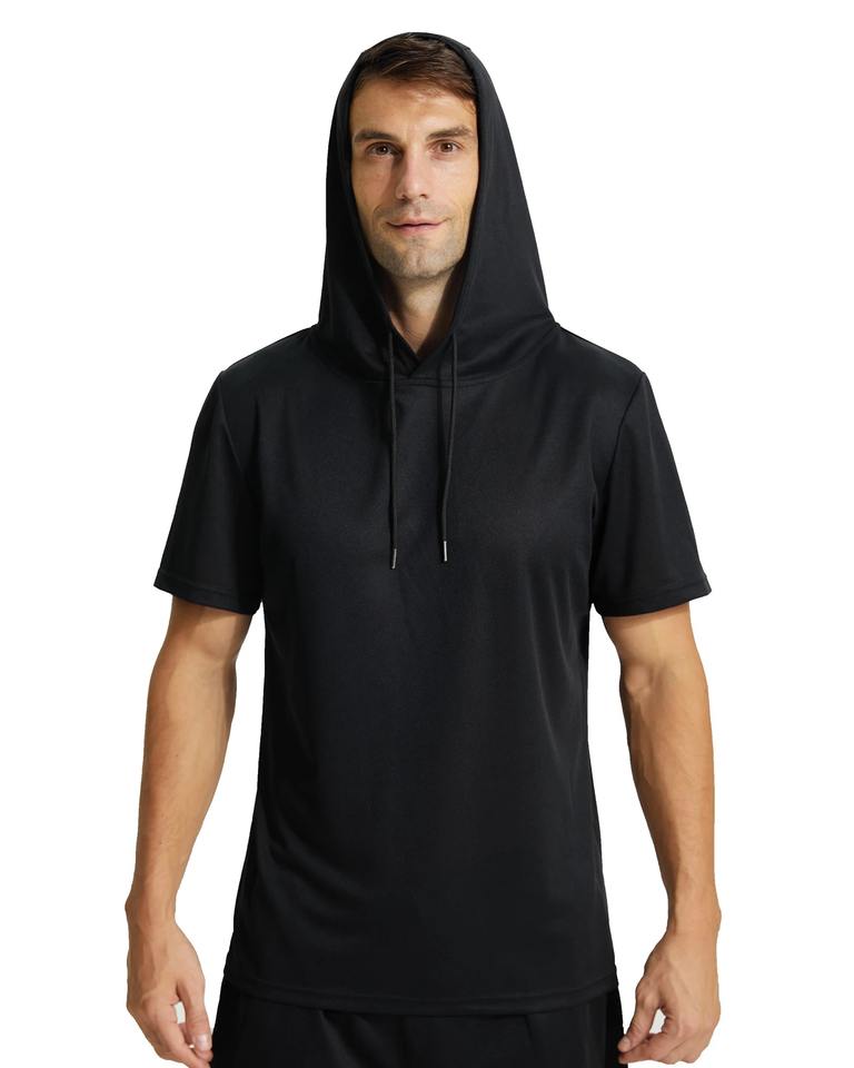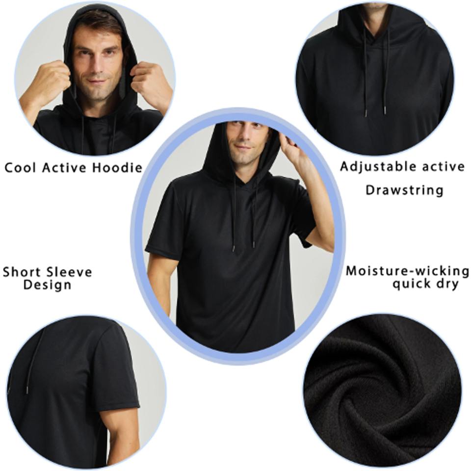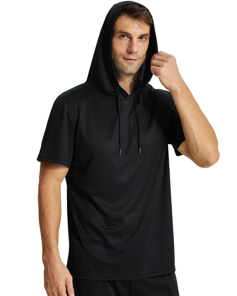 Mens Workout Hooded Shirts Short Sleeve Muscle Fit Gym Running T-Shirts Sweatshirt Hooded