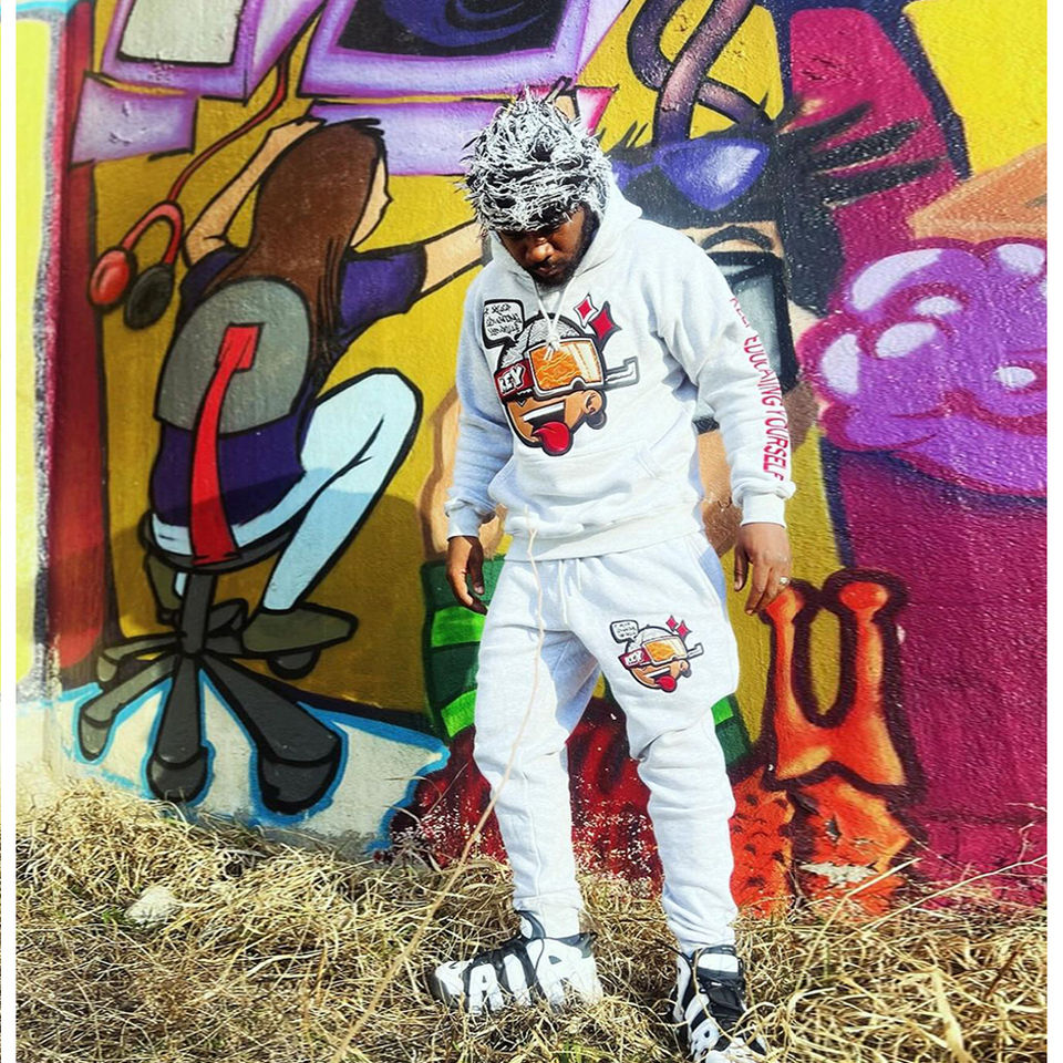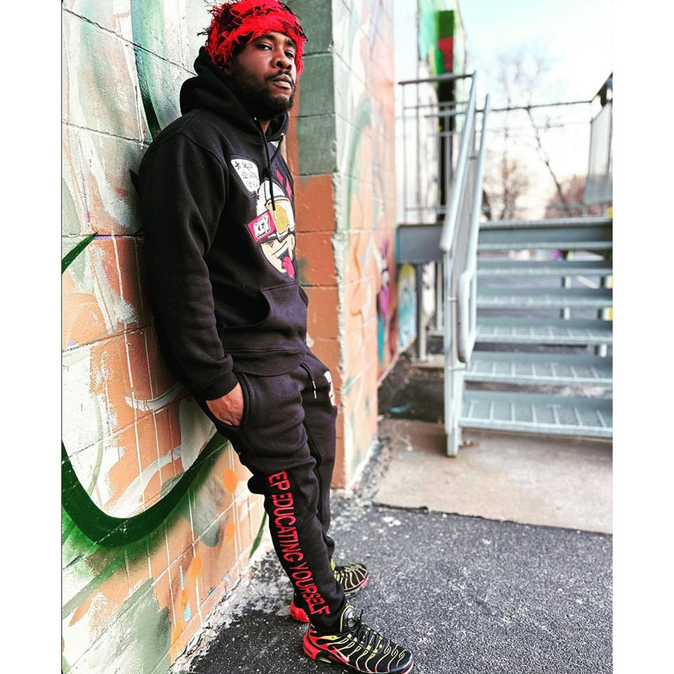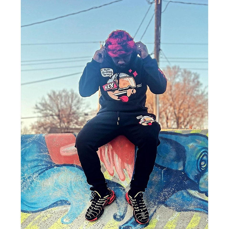 Mens black streetwear tracksuit set graphic printed hoodie and jogger pants custom logo hip latest hop fashion casual wear