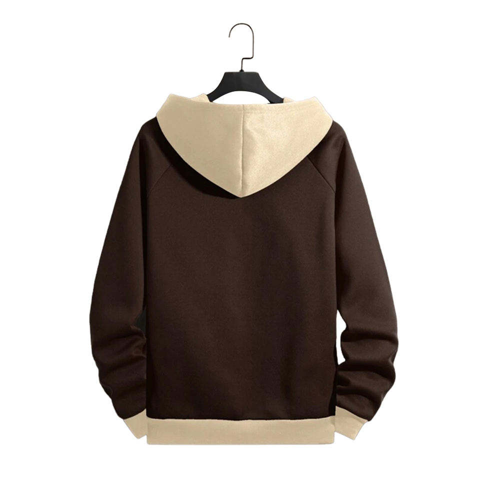 Mens brown beige hoodie two tone pullover soft casual long sleeve stylish modern street fashion everyday wear top