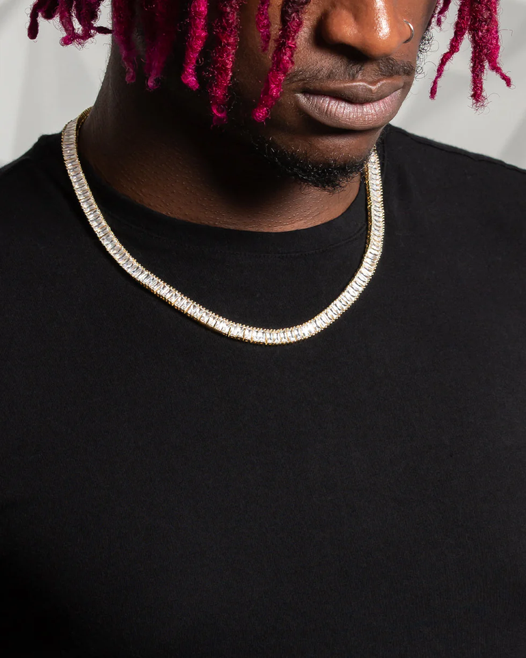 Mens gold plated baguette chain necklace iced out hip hop jewelry luxury fashion accessory stylish party wear statement chain