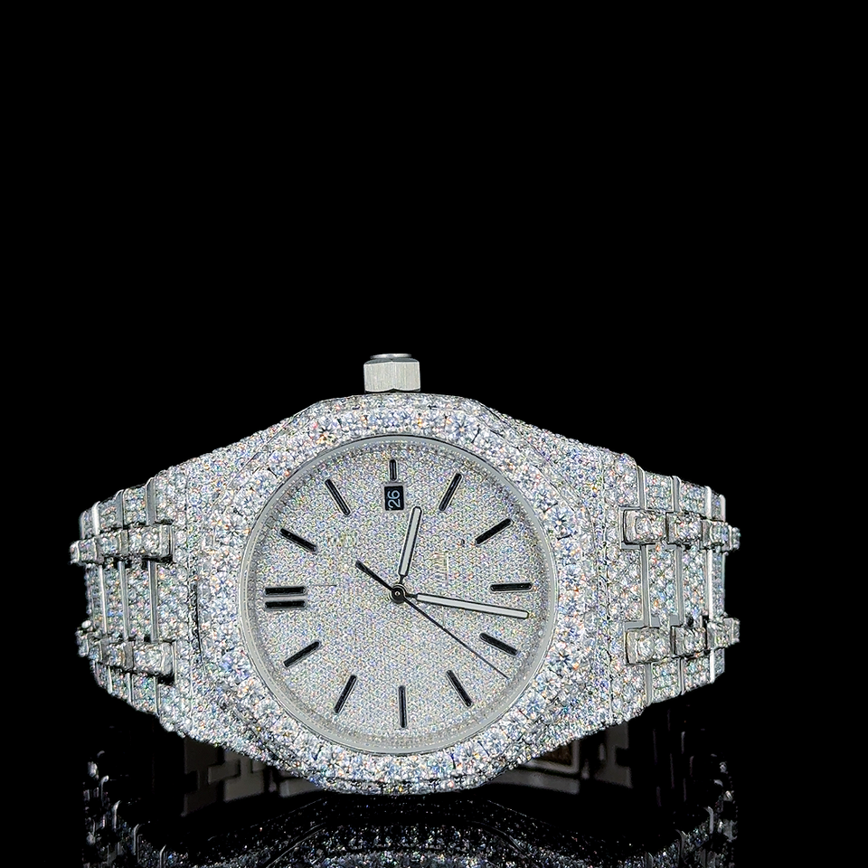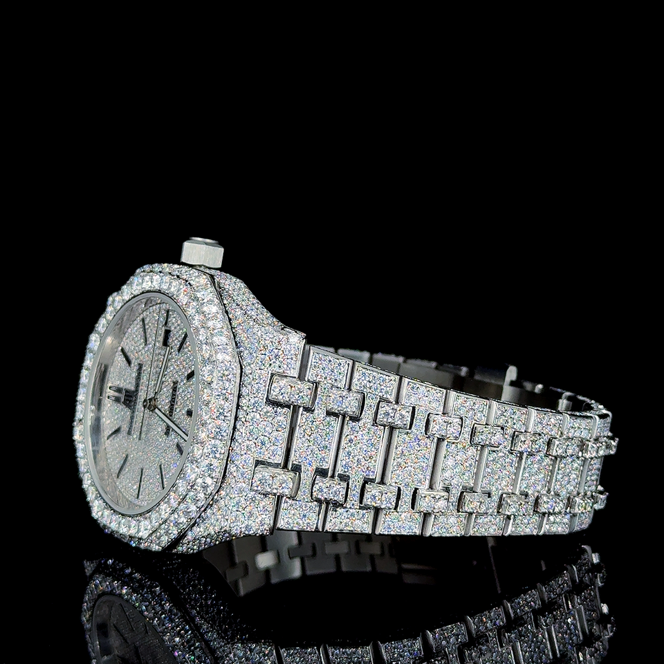 Mens hip hop watch fully iced moissanite diamond luxury bracelet watch silver tone bold party wear premium daily use