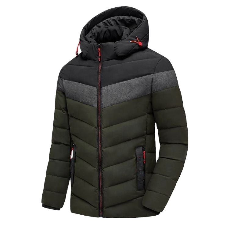 Mens insulated lightweight puffer jacket warm waterproof hooded winter coat windproof outerwear for hiking and use