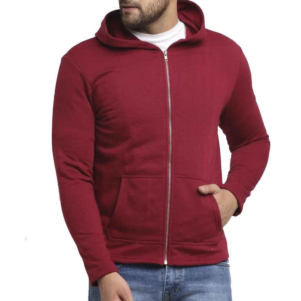 Mens maroon zip up hoodie soft fleece jacket casual warm sweatshirt long sleeve comfortable everyday wear