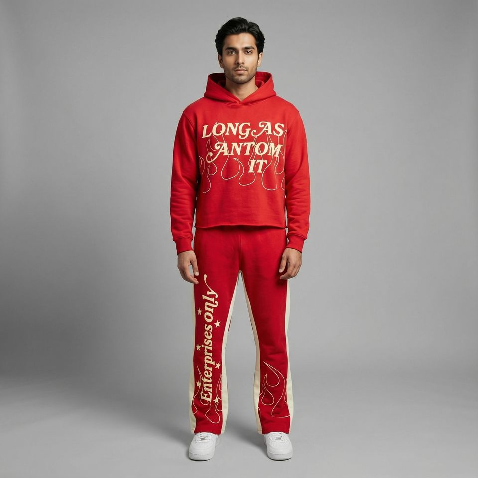 Mens Red printed hoodie and jogger tracksuit set two piece sweatsuit casual streetwear fashion athletic Tracksuit outfit