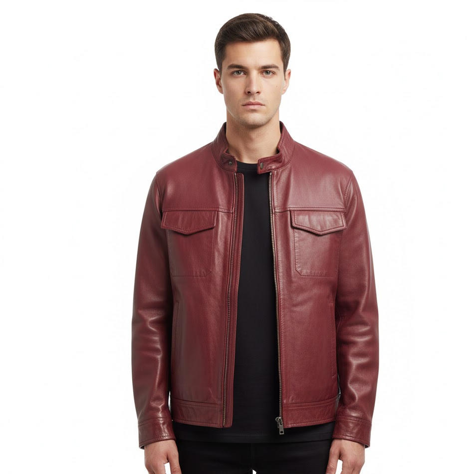 Mens Real Sheepskin Motorcycle Jacket OEM Custom Factory Supplier Wholesale Stylish Warm Durable Biker Outerwear Front