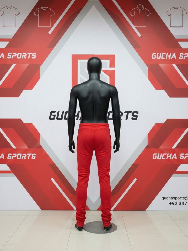 Mens red slim fit jogger pants with soft stretch fabric, adjustable drawstring waist, tapered leg, casual streetwear style wear