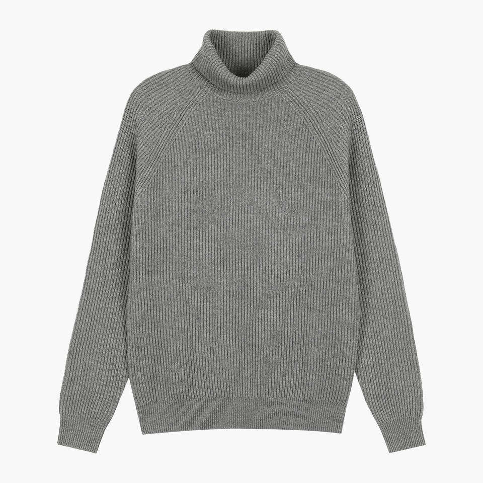 Mens ribbed turtleneck sweater solid color warm winter knitted pullover