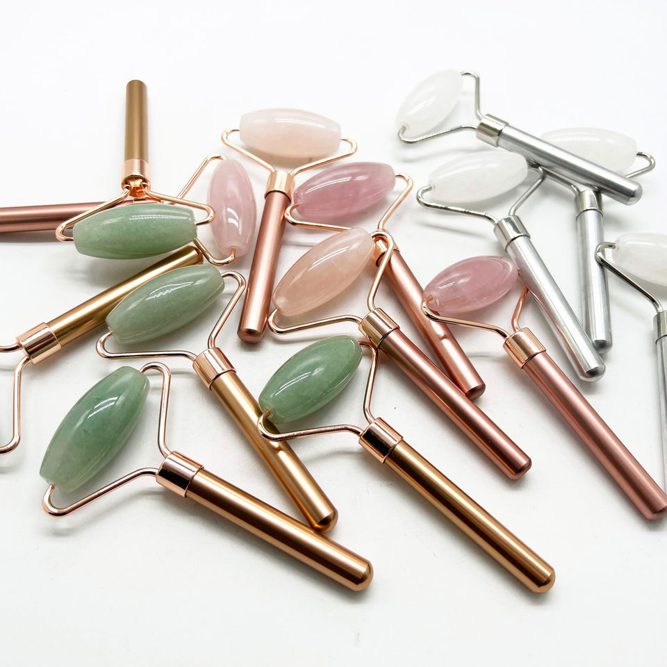 Mental Handle Pure Natural Green Aventurine Jade Roller Anti-aging eyes Roller Massager Skincare Beauty Roller for eyes