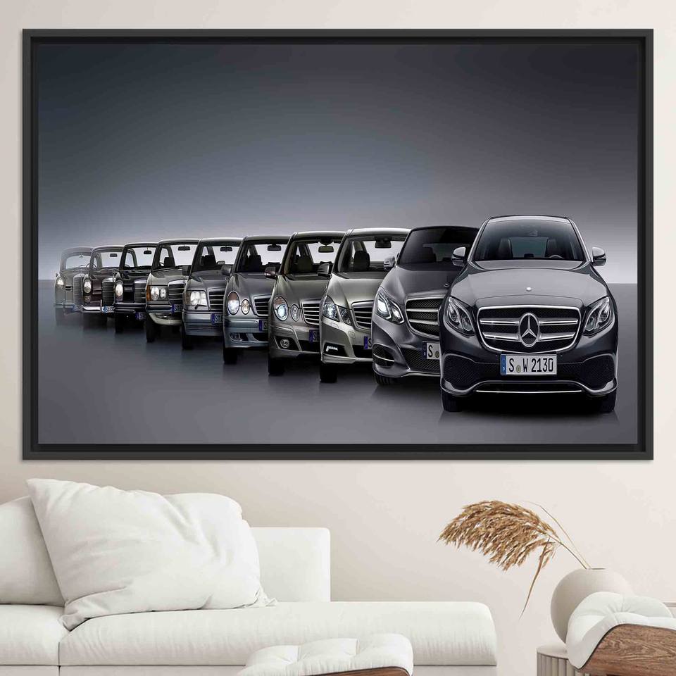 Mercedes Benz E Series Canvas Art: Elegant Custom Garage Decor,BLACK FRAMED CANVAS