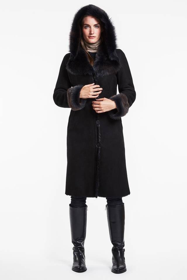 Merino Sheepskin Genuine Leather Garment Dyed Luxury Quality Long Coat for Ladies 2018 Style Valeriano Romano