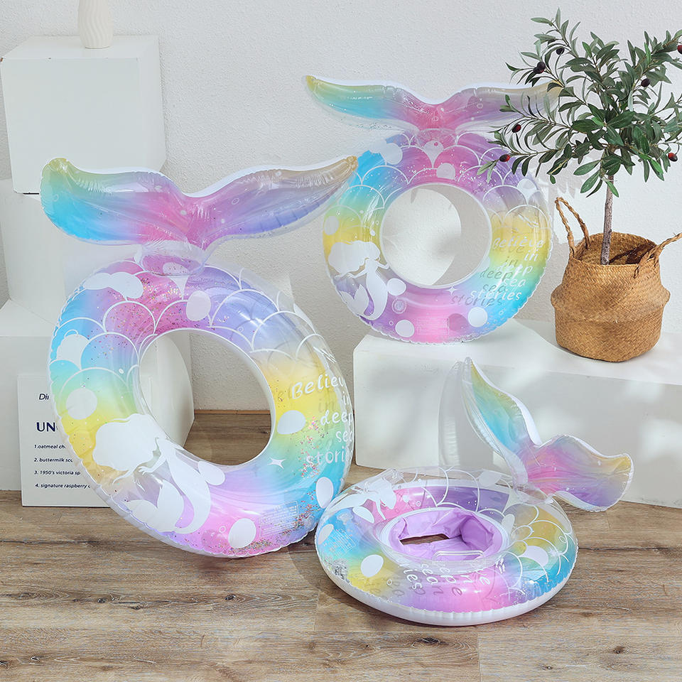 Mermaid Tail Swimming Ring Inflatable Pool Float For Children With Sequin Design Novelty Shape