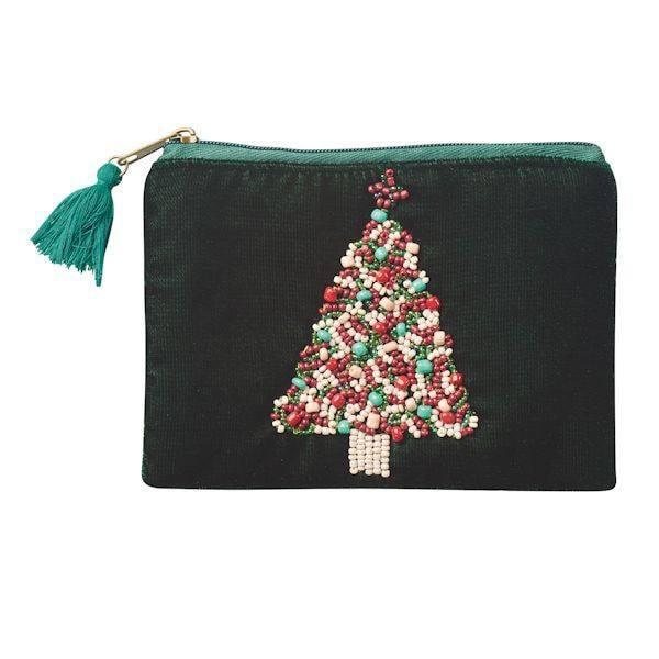 Merry Christmas Beaded Coin Purse with Silver Snowflakes in Color Red Holiday Coin Purse Naughty Nice by MD HANDICRAFTS
