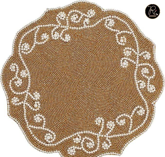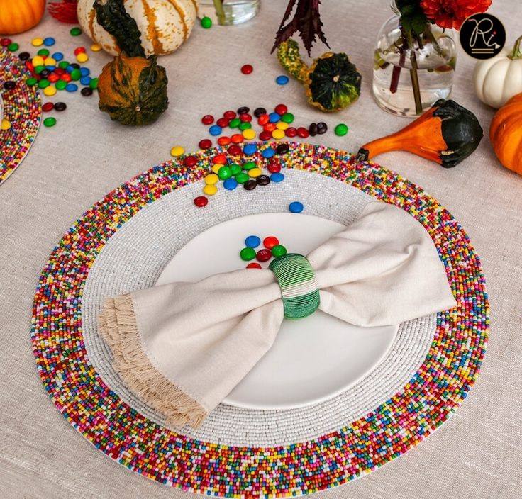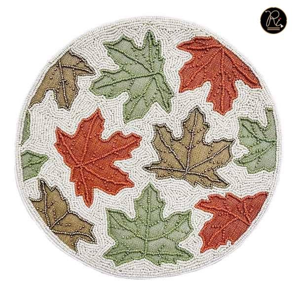 Merry Christmas Handmade Beaded Placemat Round Table Mat for Holiday Decor Festive Dining and Seasonal Home Styling