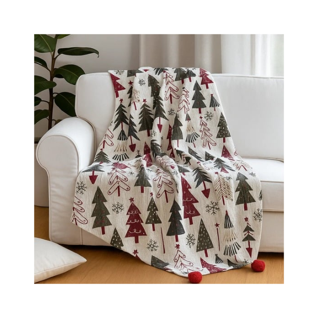 Merry Christmas Herringbone 50x70in Drape Fairtrade India For Buyers Seeking Breathable Natural Look Decorative Lounge Throw
