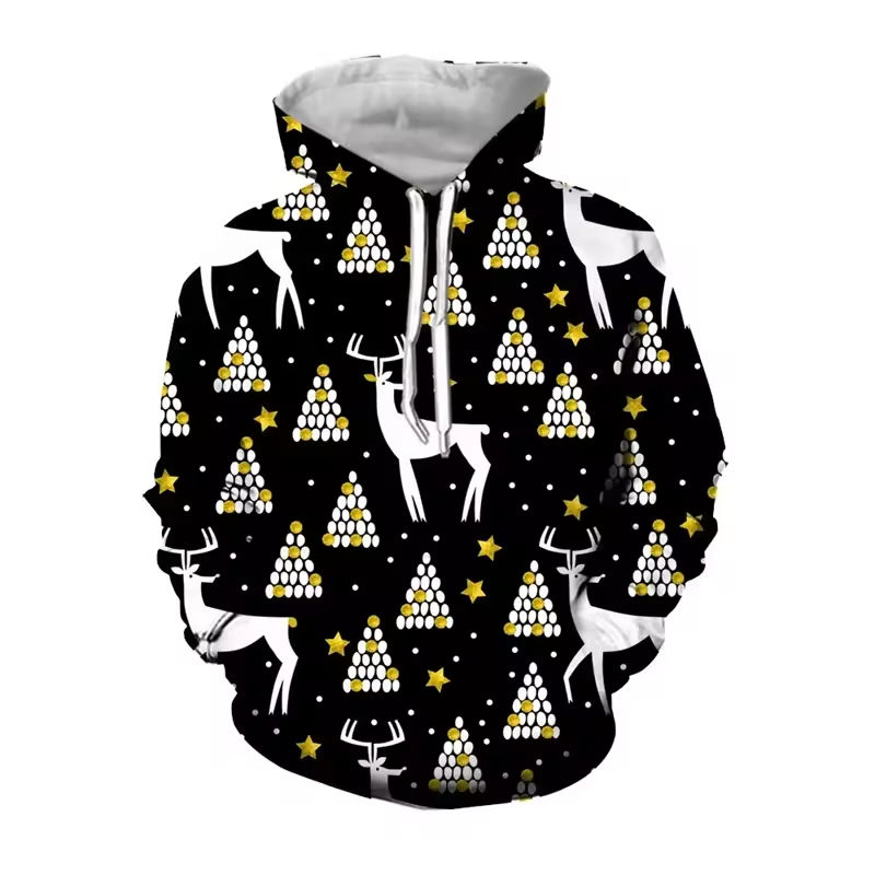 Merry Christmas Print Hoodies Casual Pocket Long Sleeve Drawstring Christmas Hoodies Customized Cartoon Christmas Hoodie