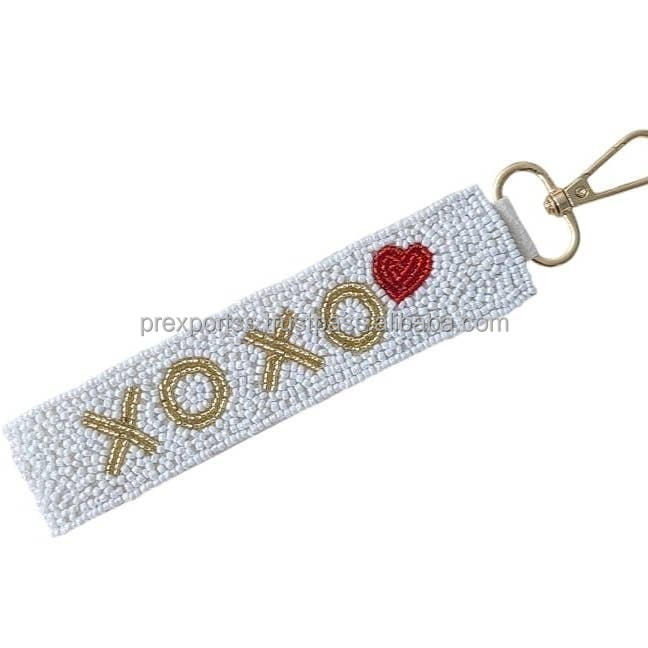 Merry Christmas Handmade Embroidered Beaded Keychain Wristlet Key Ring Sequin Purse Accessory Women's Eco-Friendly DIY Bag