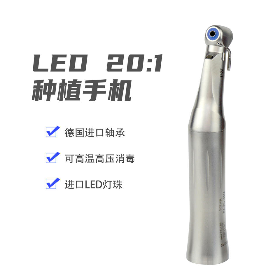 Mesen Dental Implant Handpiece 20:1 Reduction Gear Bend Head Self Illuminating Turbine Silver Stainless Steel