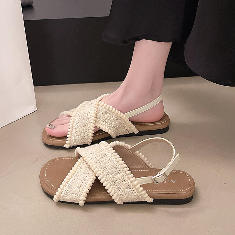 Mesh Weave Flats Sandals Women Shoes Casual Slippers Beach Bohemia Summer 2025 Trend Slingback Open Toe Flip Flops Dress Slides