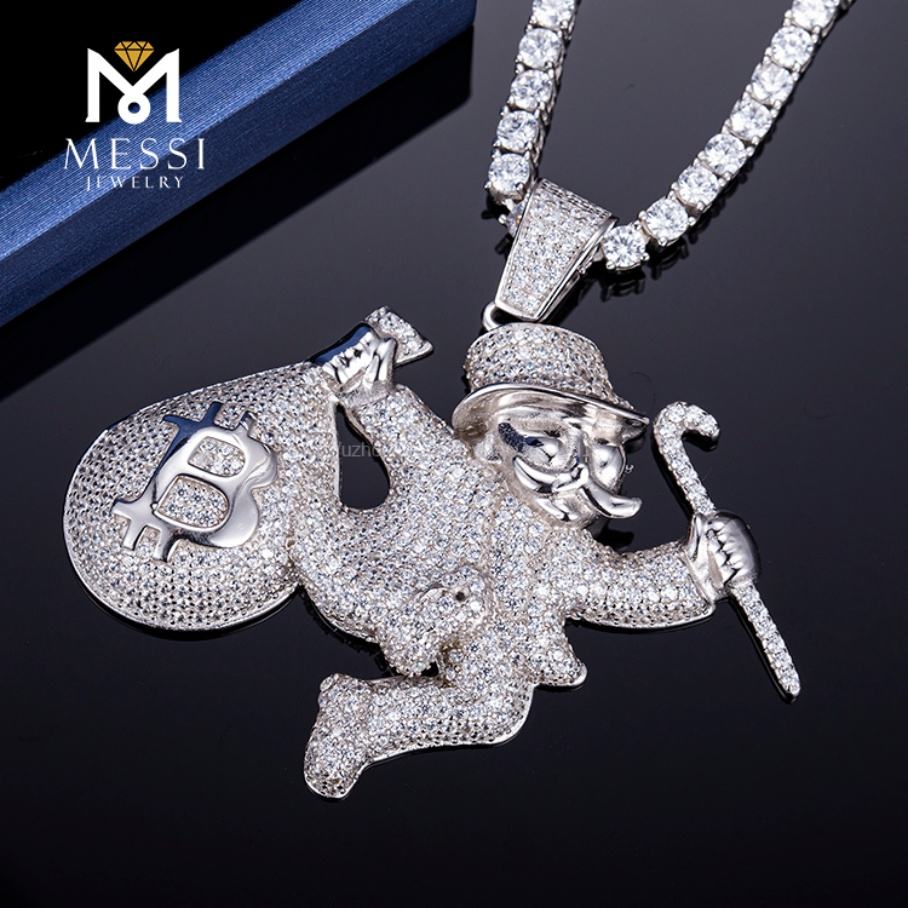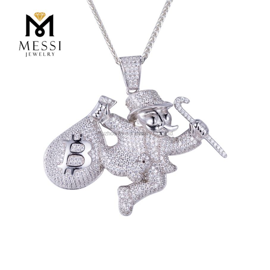 Messi Jewelry 925 Silver Jewelry Hip Hop CZ Iced Out Men's Pendant Chain Necklace