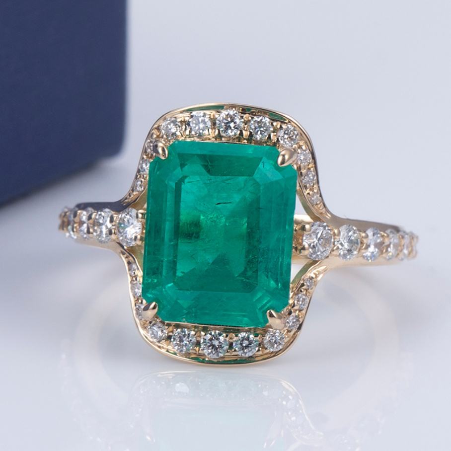 Messi Jewelry MS-622 18k Gold Women Fashion Jewelry Create Emerald Halo Ring