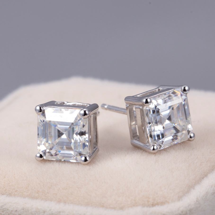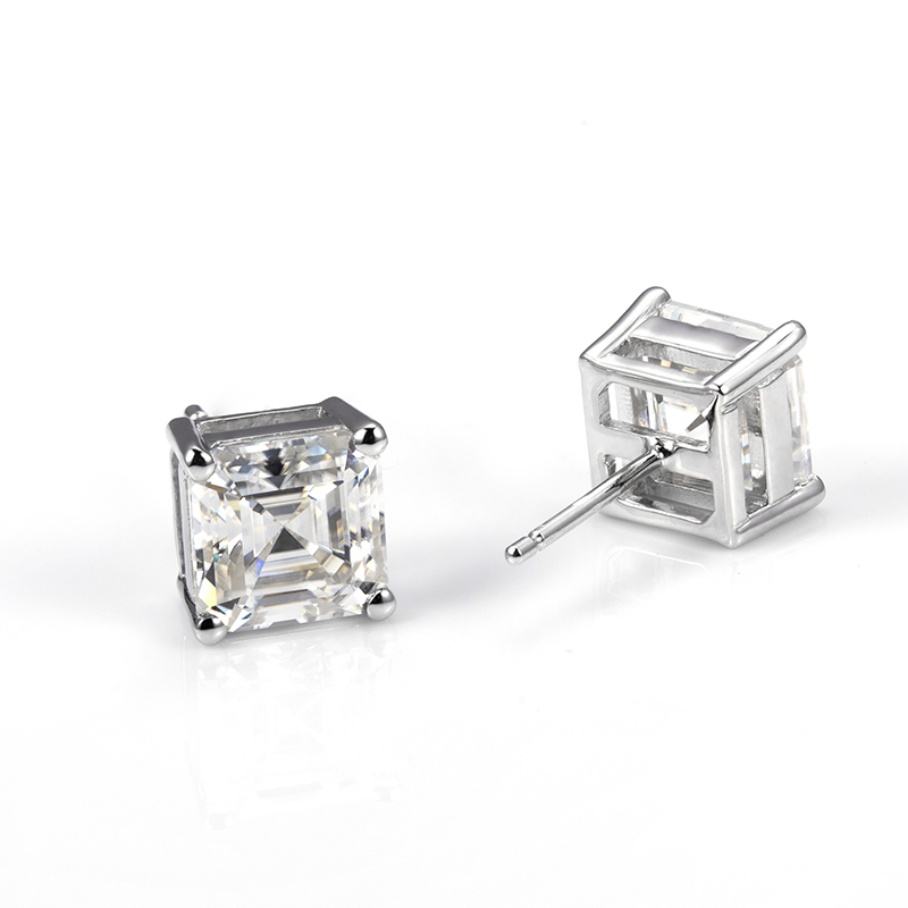 Messi Jewelry MSE-585 18k With 1ct Asscher Cut Lab Grown Diamond Earring Stud IGI