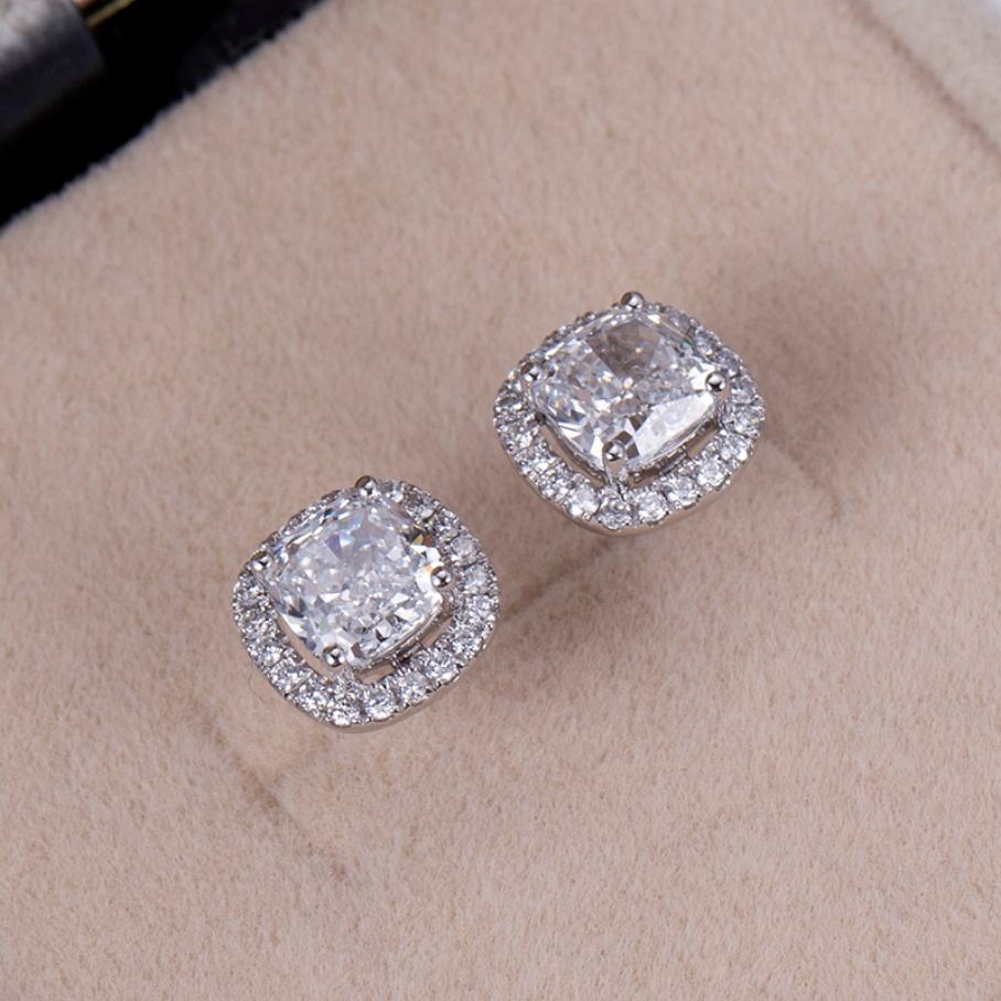 Messi Jewelry MSE-590 14K 5*5 Cushion Diamond Earrings Engagement Dating Gift for Girls