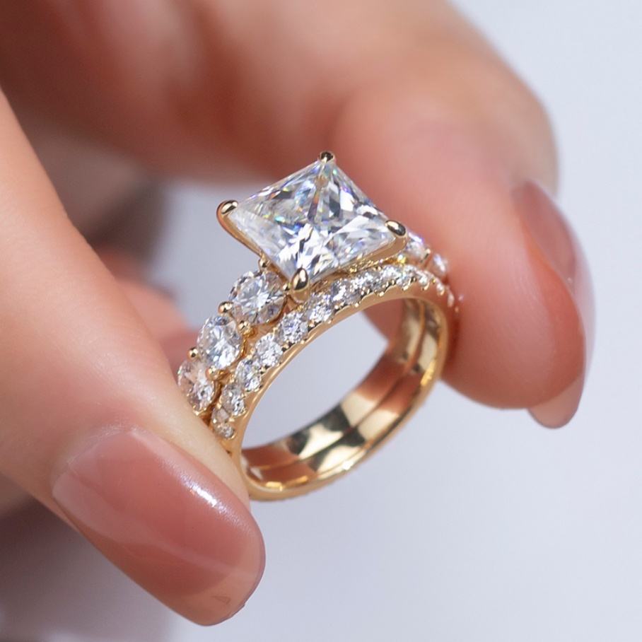 Messi Jewelry MSR-1037 18K Gold 8x8mm Square Moissanite Fashion Jewelry Rings