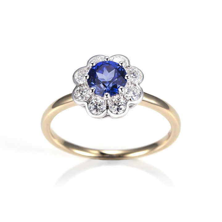 Messi Jewelry MSR-1546 9K Yellow Gold Lab Grown Diamond Sapphire Ring For Women
