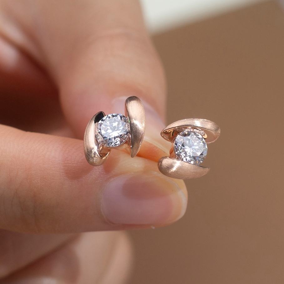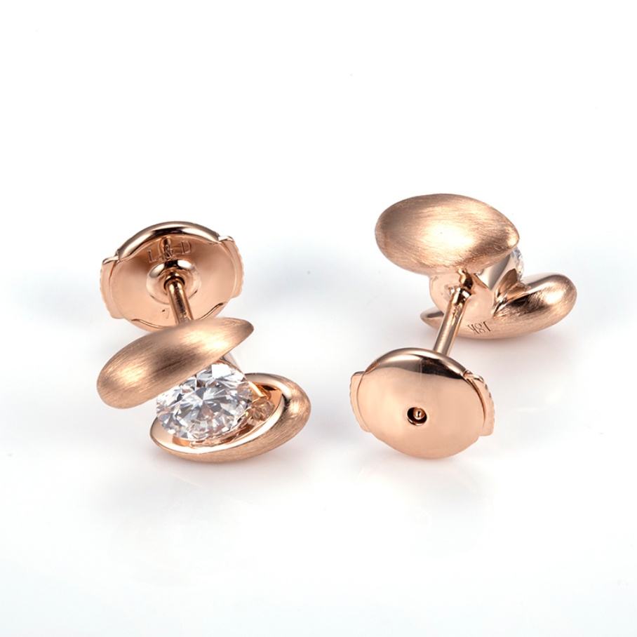 Messi Jewelry MSR-680 14K Rose Gold IGI 1 CTW Lab Diamond Ear Studs With Satin Finish