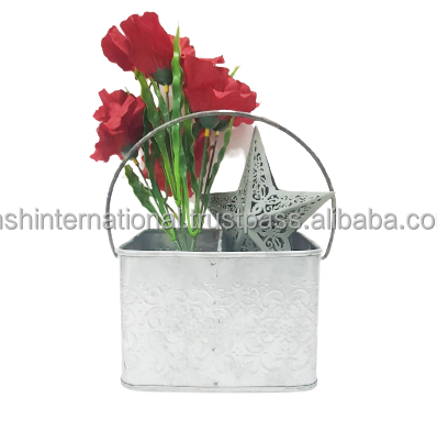 Metal 2 Section Metal Iron Oval Shaped Utensil Caddy Kitchen Counter Metal Galvanized Caddy