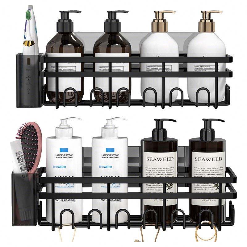 Metal 2 Tier Bathroom Adhesive Shower Caddy Shelf Countertop Organizer