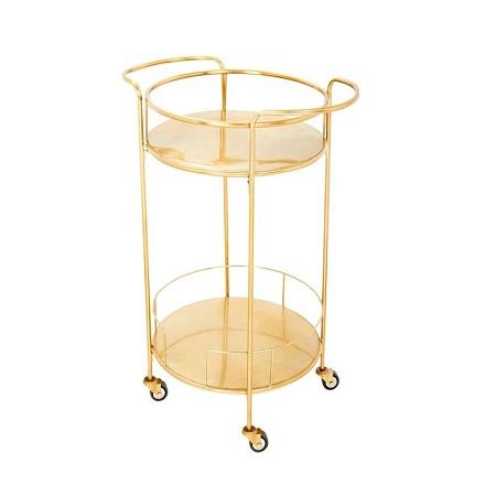 Metal 2 Tier Food Serving Trending Design Customized Shape Tea Cart Service Trolley For Hotel And Restaurant Use