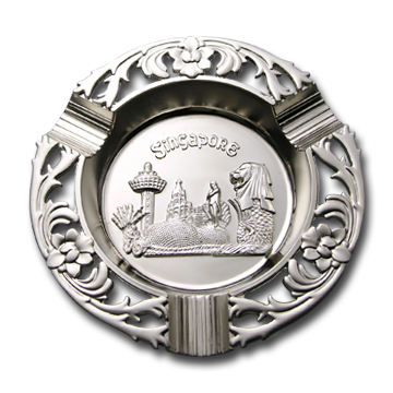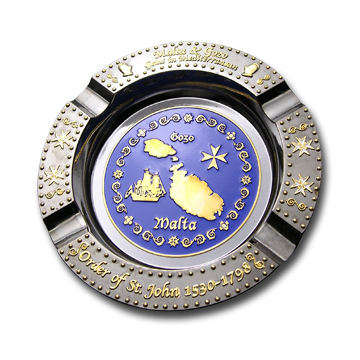 Metal 3D Antique Silver Round Ashtray, Madeira Travel Souvenir Cigar Ashtray
