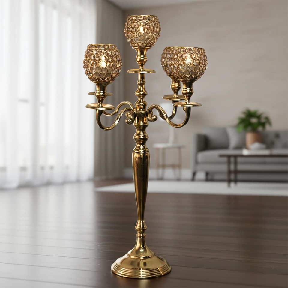Metal 5 Arms Tall Candelabra With Solid Base Centerpieces Handmade Candle Holder for Christmas Wedding Dinner Table Decoration