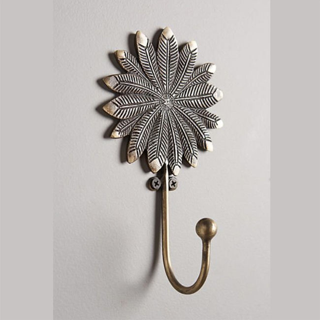 Metal Aluminum Antique Brass Sunflower Wall Hook for Bathroom Kitchen And Decorative Single Coat & Hat Hooks