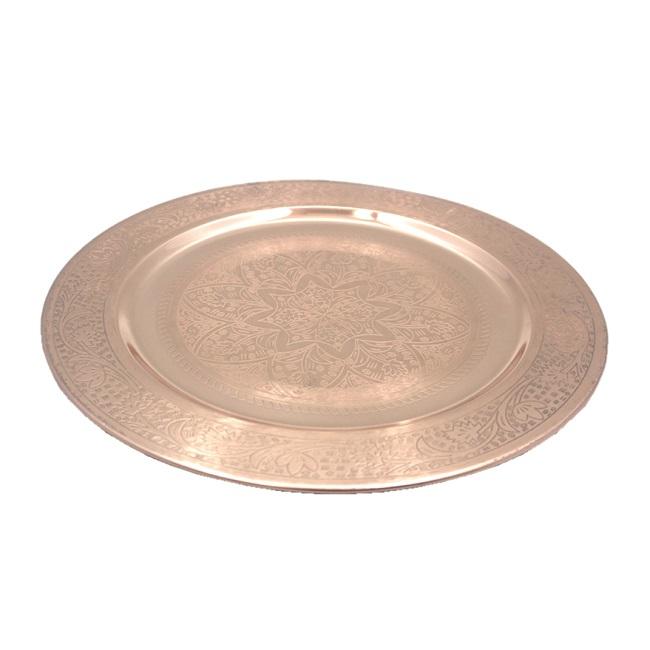 Metal Aluminum Texture Round Shape Modern Style Charger Plate Copper Plated With Hammer Unique Design Antique Finishing Plate