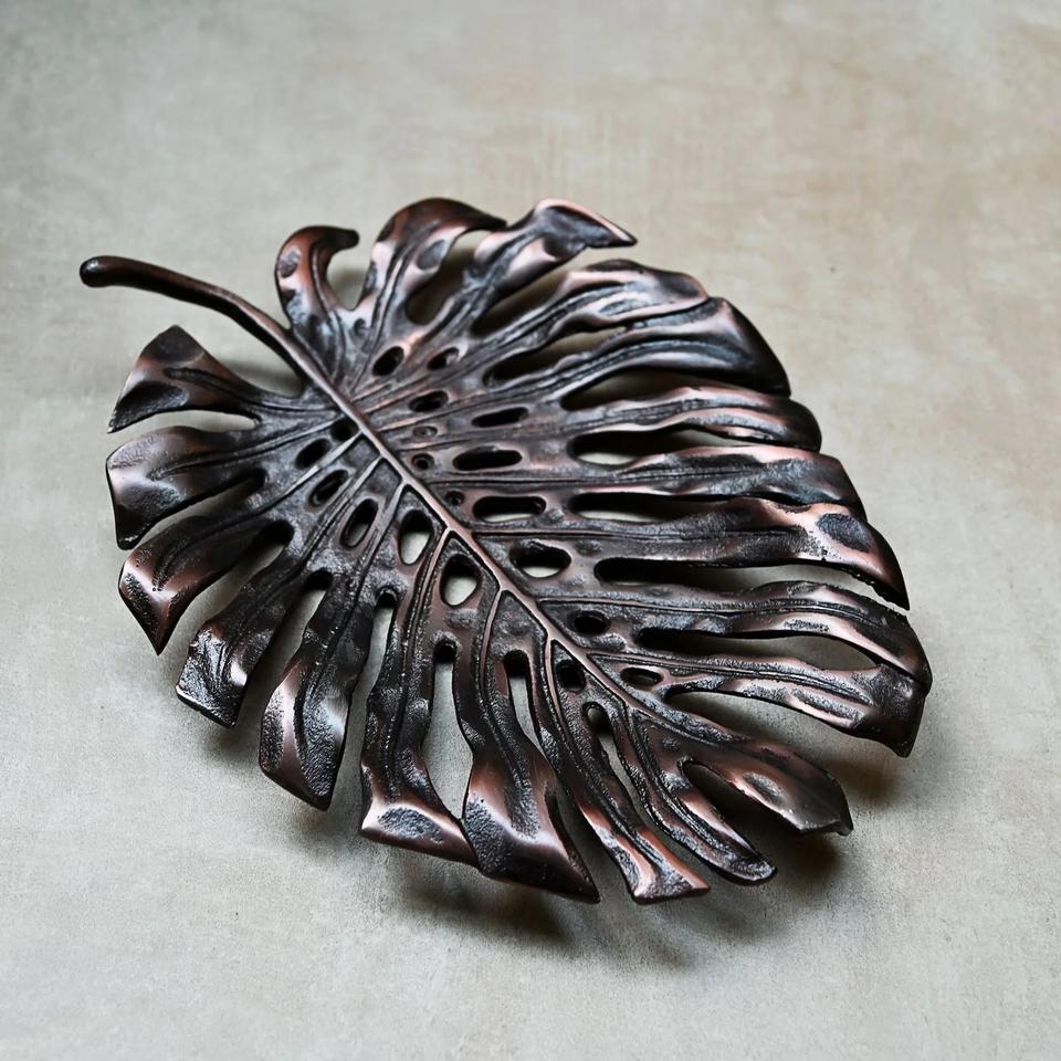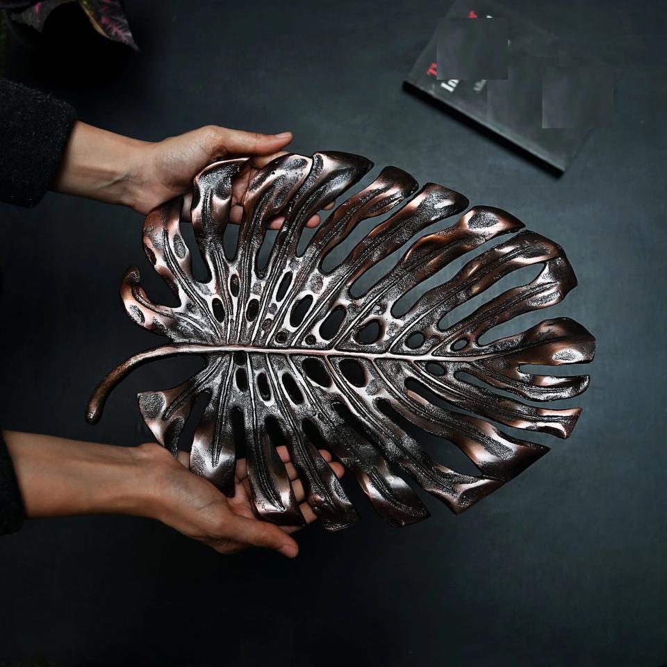 Metal Antique Leaf Tray Snacks and Salad Serving Tray Home Kitchen Decoration Aluminium Leaf Tray for Wedding Centrepiece
