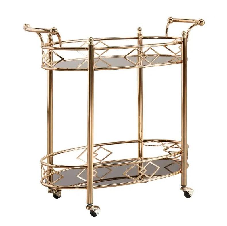 Metal Bar Cart with Bottle Storage Glass Holder and Smooth Rolling Wheels for Modern Home Party Hosting and Cocktail Use