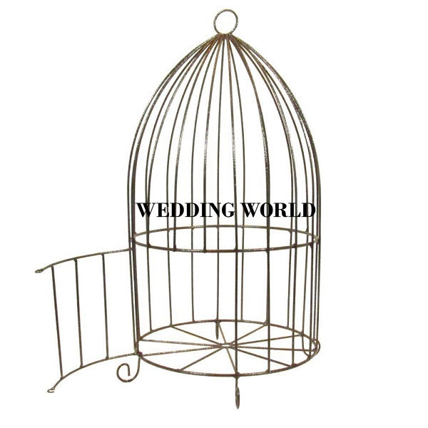 Metal Bird Cage Wrought Iron Wire Gold Finished Pet Bird Cage for Home and Garden Decoration Set of Two Cages