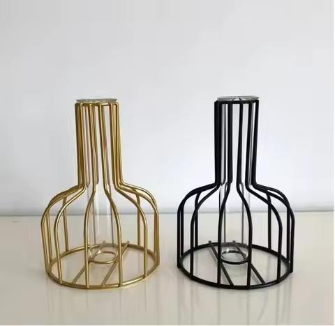 Metal Black Gold Flower Vase Test Tube Vase for Hydroponic Plant, Small Bud Pot Office Table Top