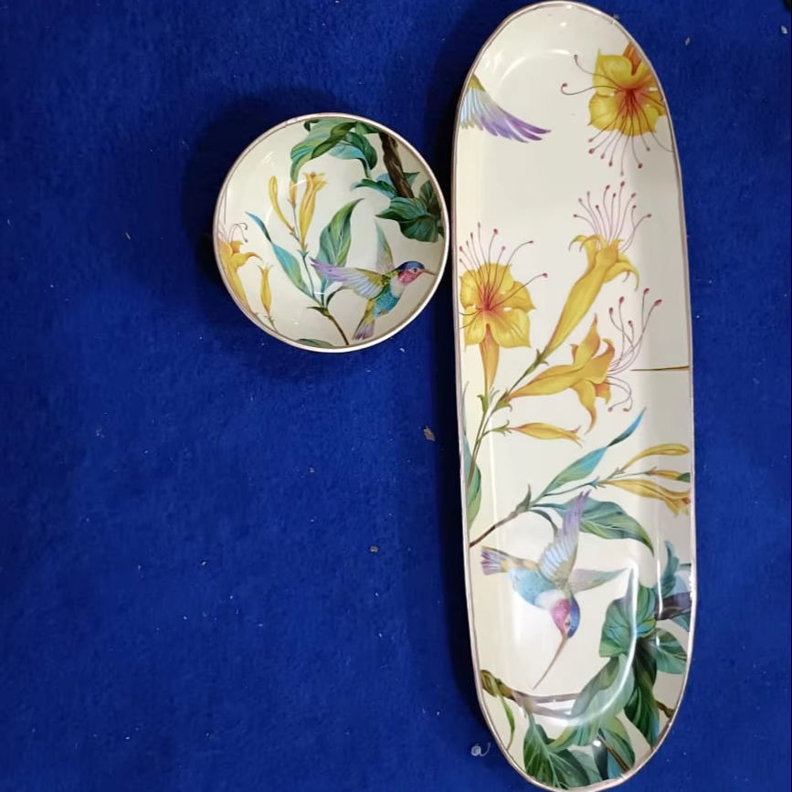 Wholesale Customizable Metal Boat Shape Chip and Dip Platter Enamel Printed Dinnerware with Work Customization